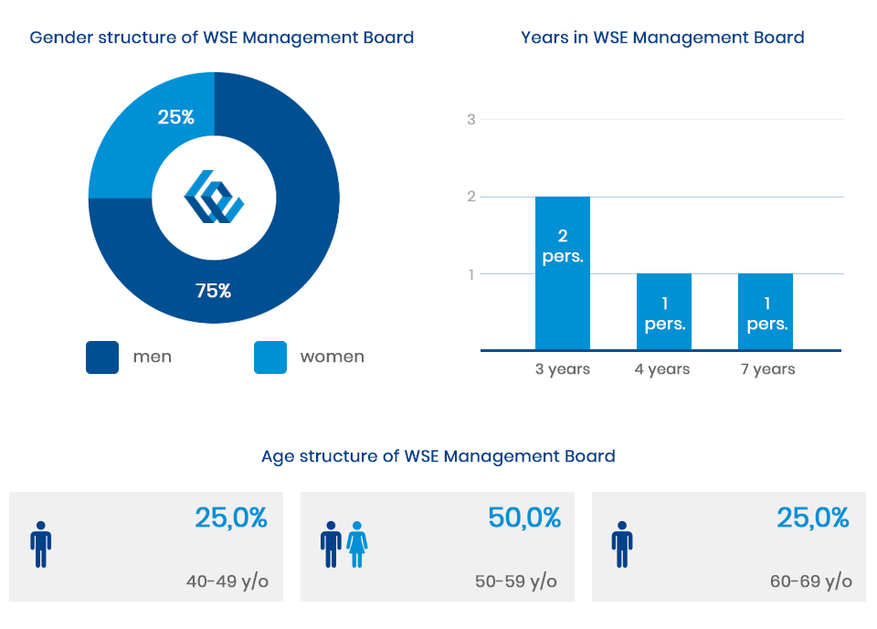 Diversity and openness are at the heart of GPW’s business operations and underpin the Exchange’s recruitment and employment policy. As a socially responsible employer, the Exchange follows the principles of equal treatment and non-discrimination. GPW’s diversity policy creates a work environment where everyone feels respected and appreciated, develops their talents and predispositions, and achieves their potential while contributing to the success of the entire Exchange. Guided by respect for a diverse and multicultural community, GPW attaches special importance to equal treatment and equal opportunities of employees in professional development and promotion regardless of gender, age, disability, health status, race, nationality, ethnicity, religion or lack of religious belief, political opinion, union membership, psychosexual orientation, gender identity, family status, lifestyle and any other circumstances which could give direct or indirect grounds for discrimination. These principles are governed by the GPW Diversity Policy approved by the Management Board on 21 January 2021.